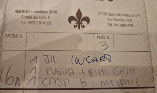 Siamo stati sorpresi nel vedere un così affermato locale prendere ordini in comande pre stampate (non eco-friendly) con nessun dispositivo digitale che avrebbe senz'altro migliorato i longevi tempi d'attesa.