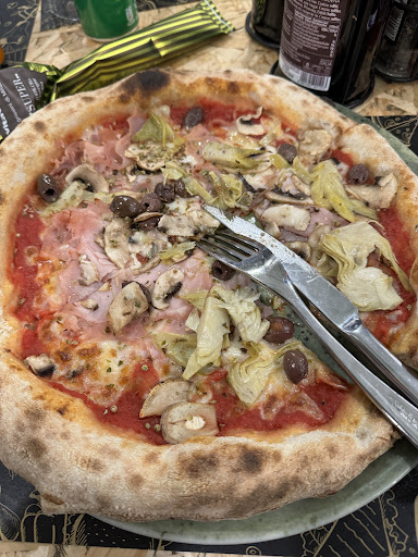 Tavolo prenotato alle ore 20:30 con una settimana di preavviso per un totale di 13 persone. All'arrivo al ristorante ci hanno fatto accomodare in una saletta affianco per non avere disturbo dalla sala bambini. I camerieri nemmeno un cenno di sorriso o accoglienza. Ci accomodiamo e attendiamo dalle 20:30 alle 20:45 in attesa che qualcuno venisse a prendere l'ordine al tavolo per le bevande, poco dopo arriva la cameriera dicendo che avremmo potuto ordinare solo da bere perché non era possibile ordinare da mangiare (nonostante il locale non fosse pieno,) chiedo quanto avremmo dovuto aspettare e la sua risposta è stata di "Dobbiamo aspettare di finire i tavoli presenti in sala,10 minuti penso se non vi va bene lo vado a dire al capo" forse lei pensando che mi avrebbe intimorita ma per me se lo dici al capo è ancora meglio. Il capo è venuto dunque a prenderci l'ordine con un esclamazione " Avete fretta?" (esclamazione poco carina dopo che la cameriera che è stata al nostro tavolo ha avuto un comportamento molto maleducato rispondendo male dall'inizio alla fine) ora eh per carità sarà anche tuo il posto ma se dei clienti prenotano in un posto per cenare sicuramente sapendo che dall'ordine all'arrivo del piatto ci può volere un bel po' io credo sia normale voler ordinare perché sicuramente non sono venuta a trovarvi per guardare i muri. Presa ordine 20:50 arrivo dei piatti 21:35, attesa giusta dato che eravamo un bel tavolone. Pizze buone ma come avrei potuto aspettarmi (dato già l'inizio del servizio) sono state ordinate 2 pizze Tropea di cui una con n'duja e una senza, all'arrivo delle pizze al tavolo sono state scambiate annunciando pure chi è con n'duja e senza? bene, ha sbagliato. Facendo strozzare la Signora con noi al tavolo con una forte sensibilità al piccante. Arriva il momento del dolce, esaltano tanto il prodotto Cheesecake ma ragazzi con tutto il rispetto dovrebbero dire a priori che sono tutte uguali ma ricoperte di topping quindi solo glassate al momento della consegna del piatto. Le annunciano come Cheesecake pistacchio, cioccolato, frutti di bosco ecc... apprezzo la produzione propria ma non sono all'ingrediente che comunicano ma semplicemente con topping. Io mi prendo la responsabilità del fatto che mi sono fidata di questo posto quando qualche tempo fa avevo preso solo una pizza d'asporto e l'ho trovata davvero buona, pensando fosse una buona idea farla provare anche ad altre persone. Invece mi sono ritrovata a passare una serata tutto tranne che piacevole, mi dispiace che io non sappia il nome della cameriera ma se lavora con questo poco entusiasmo i clienti lo percepiscono benissimo facendo passare una serata a dir poco scomoda e a disagio. Io essendo del settore mi sento a dir poco esterrefatta essendo andata a casa molto turbata da tutto. Sulla pizza non posso dire niente perché è stata buonissima ma sul resto ragazzi...