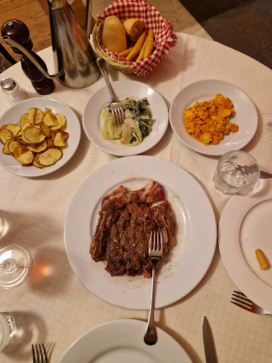 Read moreEsperienza non troppo positiva in questa trattoria che, sinceramente, mi aspettavo meglio, sia per la quantità che per il prezzo. Innanzitutto, neanche su specifica richiesta, ci è stato fornito un menù dove fossero esposti i prezzi, ma le pietanze sono state solo elencate velocemente a voce dal proprietario. Comunque abbiamo ordinato una tagliata di manzo e una grigliata mista con contorni di verdure e patate al forno (mai arrivate. Al loro posto sono arrivate patate chips) Le quantità sono state al limite dell'accettabile. La grigliata anche anche, ma la porzione di tagliata (per carità, cotta alla perfezione) era adatta più a un bambino che a un adulto. Buona la verdura cotta di contorno. 2 bottiglie di acqua naturale (da 0.75) , una fetta di crostata e un caffè. Totale 45 euro. Sinceramente un po' troppo visto quello che si trova in zona....