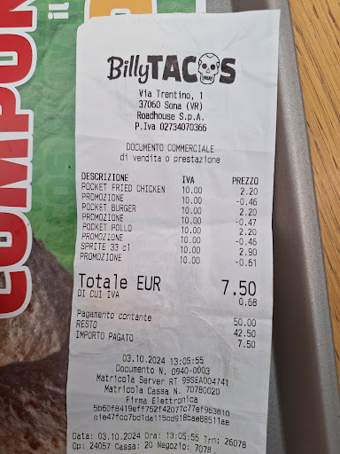 Non mi aspettavo di certo un esperienza gourmet ma il cibo è letteralmente disgustoso! Io e la fidanzata eravamo di passaggio e siamo stati attirati dalla "combo" a 6/7 euro a persona.. Lei ha preso quesadillas io tacos. Questo è quanto ci è stato rifilato: impasto piadina di consistenza molle, contenente pollo stile "kebab preconfezionato", e come unico condimento una salsa cheddar oleosa e salata. Una qualità pessima e immangiabile e credo di non aver mai trovato cibo più ripugnante in nessun altro ristorante.. In un secondo momento ho notato che quasi tutti i "ristoranti" della catena Billy Tacos hanno punteggi molto bassi nelle recensioni, ma qui si supera ogni limite di indecenza e di mancanza di rispetto per il cliente! Consiglio a chiunque di...