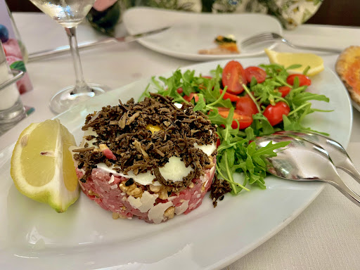 Read moreciao,come luogo meriterebbe 2 stelle in più x quello che offre e cioè immerso nel verde, con parco giochi x bambini,un ampio parcheggio,locale elegante con tovaglie e tovaglioli in tessuto...è la sera del 20 agosto 2022 e sono andato x la prima volta in questo ristorante con la solita compagnia...premetto che devo dare 3 stelle x quello che ho mangiato io e se fossi stato uno degli altri miei commensali invece avrei dato una stella in più...intanto il menù è talmente ampio che al momento della presa dell'ordine io ero l'unico che non aveva deciso cosa mangiare...solo x la vastità dei piatti che non conosco e quindi x tutta la carrellata il tempo non mi è stato sufficiente alla fine ho deciso x costata della casa (prezzo 26,50 ,mi pare eccessivo) che nel menù veniva accompagnata da patate al forno con rosmarino...la costata andava bene(anche se non mi ha sfamato)mentre le patate secondo me non erano buone e sembravano lesse e poi messe leggermente al forno così come il pane che non mi pareva buono...eravamo in dieci e ho visto che i loro piatti (a parte una persona)fatti di antipasto vario di pesce erano buoni e abbondanti,così come una frittura di calamari mista accompagnata da verdure in pastella...l'altra persona ha mangiato gnocchi non so con che cosa e grigliata mista e mi sembrava il tutto a vista buono...il ristorante è stato prenotato e molto affollato,l'attesa non è stata lunga anzi considerando menù vasto,folla,piatti diversi richiesti veloci...camerieri cortesi e attenti...posate lunghissime...