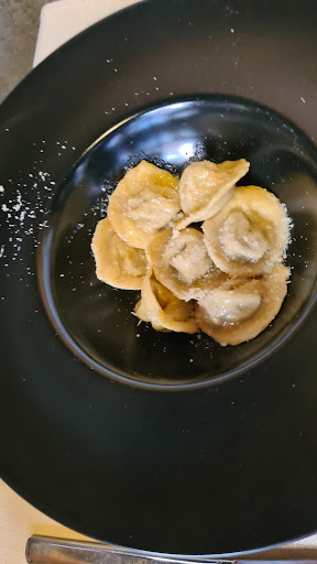 Read moreCon amici sono stata in questa Enoteca carina e particolare sicuramente, ma con l’intento di mangiare con porzioni decenti….io personalmente ho ordinato ravioli al burro fuso e quando è arrivato il piatto sono rimasta delusa….7 ravioli(mediocri) contati e alla modica cifra di €.17. Per fortuna avevo preso anche un tagliere di salumi da dividere con un altro commensale ed un cestino di pane che farlo pagare € 3,50 e trincerarsi sul discorso che non fate pagare il coperto, credo che sia un po’ troppo. Mediamente il coperto è di 1€. 4 persone sono 4 €, mentre due cestini dj pane (perché ci siamo limitatia due)per 4 persone sono €.7,00. Secondo me dovreste puntare su panini e crostoni (che fanno buona compagnia ai vini) anche nei festivi, così da esaltare l’essere Enoteca visto il ricco menù di vini in bottiglia e calici (almeno sei fogli), a discapito del menù di cucina ridotto a due fogli. Non credete????? Se avessi voluto con i miei amici mangiare in un ristorante ricercato saremmo andati in Galleria a Milano da Cracco con la consapevolezza di un conto altrettanto ricercato.