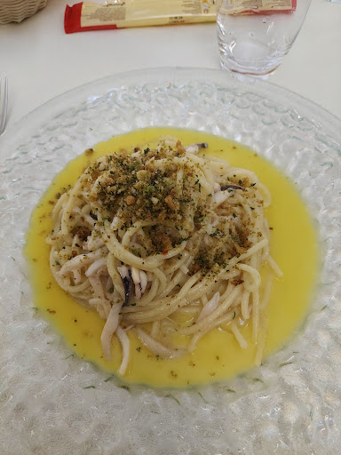 Cibo impiattato da uno chef. Ipotizzo che l'antipasto (proposto con assaggi di freddi e caldi) si dovesse mangiare da sinistra verso destra ma ho preferito il contrario perché immaginavo i sapori. Mi sono fermato fortunatamente alla pasta perché ero molto sazio ma nel tempo stesso senza sentirmi pesante. Questo lasciava presagire una serata con cena leggera e un sonno profondo e infatti così è stato. Digerito tutto senza alcun problema anche avendo accompagnato il pranzo con un calice di vino...