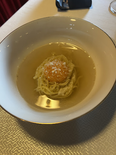 Read moreNon ci sono parole per descrivere la perfezione. È la prima volta che vado in questo locale e ne ho approfittato per il mio compleanno. Un bellissimo locale che meriterebbe una vista migliore, ma avere la cucina a vista ripaga molto la mancanza di vista esterna. Servizio a 5 stelle. Mi sono sentito coccolato (anche se non sono abituato). Piatti e abbinamenti "strani" ma azzeccati. Si inizia con il pane caldo con burro salato di Normandia, spettacolare. Un entrée di benvenuto fantasia dello chef (vellutata di porcini e animelle). Abbiamo preso 2 antipasti: Lingua Salmastra: lingua cotta a bassa temperatura in guazzetto di mare con cannolicchi, cozze e alghe. Un'esperienza gustativa eccezionale, un'esplosione di sapori. Macinato di Fassona: si scioglieva in bocca, qualità della carne altissima. Siamo passati direttamente al secondo con una costata di Fassona da dividere: per i miei gusti l'avrei preferita più "al sangue" ma nonostante questo difetto, se così si può chiamare, la carne era saporita, morbida e succosa. Accompagnata da verdure arrostite e una crema di sedano rapa. Abbiamo chiuso con un la polenta alla catalana, un dolce nel suo complesso semplice ma veramente fatto bene, dolce il giusto. Qualità prezzo buono!