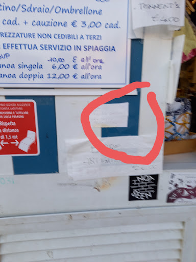 Read moreQuasi tutto i giorni sono cliente sia per acquisto bevande/varie, sia per affitto lettini e ombrellone. Spendo al giorno dai 18 ai 25 euro. Da oggi all'infinito NON VI DARÒ NEMMENO 1 CENTESIMO!!! Tutti i giorni pago in contanti, oggi mi sono trovato a pagare con bancomat (dal momento che ero sprovvisto di denaro ) inizialmente per affitto di lettini e ombrellone. C'erano dipendente e titolare. Il dipendente mi dice che non potevo pagare con bancomat perché avrei dovuto anticipare la caparra ed non avrebbero potuto ufficializzarla. CHE PROBLEMA C'È? NON TI DO LA CAPARRA E UFFICIALIZZI IL RESTO, STAZIONO DIFRONTE AL CHIOSCO E VENGO TUTTI I SACROSANTI GIORNI CONSUMANDO ANCHE AL BAR!! Di tutta risposta il dipendente fa finta di non ascoltarmi, si gira verso il titolare , pensando che non lo sentissi, esclamando "oggi tutti i rompic....oni con il bancomat" e il titolare con smorfia di approvazione! IL ROMPIC....ONI VI RICORDA CHE VI DO DA VIVERE CON I MIEI SOLDI E CONTRIBUISCO A MANTENERE IN VITA UNA "AZIENDA"! TI STUPISCI CHE TI MANDO A QUEL PAESE? MALEDUCATI E NON PROFESSIONALI!...