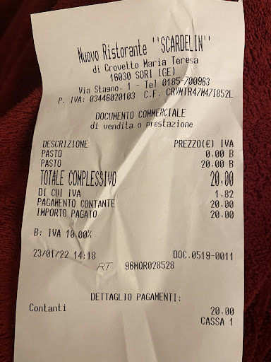 Read moreIL RISTORANTE SCANDELIN e sito nella cittadina di Sori ..provincia di Genova . Via G Stagno n 1 ..apre alle 19 .00 ..non rimane molto lontana dallaurelia basta superare il ponte e fare una piccola passeggiata di 140 metri ..verso la parte interna del paese .Io questo ristorante lo conosco lo conosco da molti anni ci sono stato parecchie volte in compagnia e posso garantirvi che qui oltre a trovare la totale tranquillità si mangia davvero in maniera ottima .La cucina e tipicamente ligure ..il pesce e fresco e fatto ottimamente .E soprattutto i proprietari sono stati sempre cordiali e simpatici .Tra i piatti che si mangia ci sono ..i ravioli di pesce ..i totani impanati e grigliati ..focaccia al formaggio ..spaghetti al cartoccio ..grigliata di pesce ..gamberi ..la Paella ..antipasto di mare freddo ..zuppa di cozze ..affogato al caffe ..orata ai ferri ..carciofi e gamberi ..tintefisch ..acciughe impanate e fritte ..insalata di verdure e pomodori con mozzarella ..spaghetti alle vongole ..fritto misto ..e da bere ottimi vini bianchi ..acqua ..amari e caffe sul finale ..i prezzi sono buoni ..ma cosa si può volere di più per una bella serata...