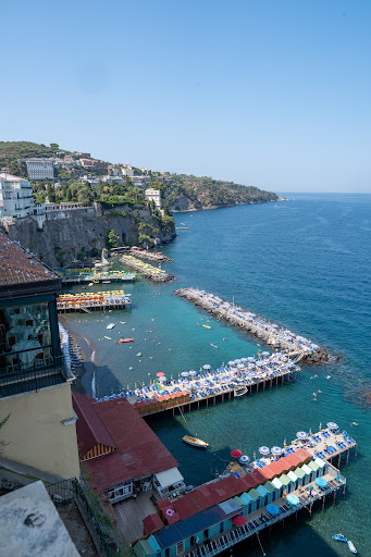 After spending the day at the beach below we came up via the lift and I said to hubby we’ve been here two weeks and haven’t sat here at La Villa for a drink to watch the sun go down or to just chill out & people watch Stunning views of Mount Vesuvius and the bay below We were shown to a table promptly they are very busy so be patient ordered two aperols and we were served with some delicious little snacks and a few extra treats came out later which was nice to have before dinner I can’t fault the service at all found them to be satisfactory given how busy they are We didn’t eat here so can’t comment Highly recommend...