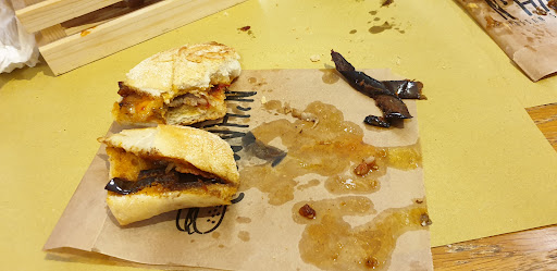 Chicken burger came within 15 minutes, boxed. We didn’t think much of it, just wanted to get back to the hotel. So we paid and left. Once he opened his box, he took 2 bites and then opened it up.