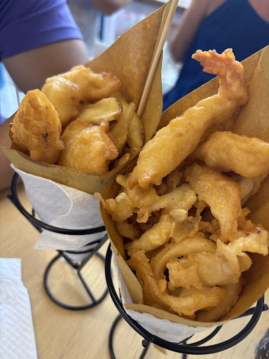Read moreA lovely little seafood place tucked away on the main street of sorrento. A little oasis of calamari. The staff are very accommodating and explain everything to you, helping with sauces and drinks from the ice cold fridge. The food itself is lovely, all local fresh seafood from the nearby sea, you can't go wrong. Our calamari and prawns were lovely and the chips were crispy and hot. Everything came for our table fresh and the presentation was lovely in little newspaper cones. All food is reasonable and good worth for your money. 100% recommend as a light or heavy lunch or maybe a later snack if you've been out drinking and maybe haven't...