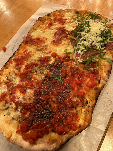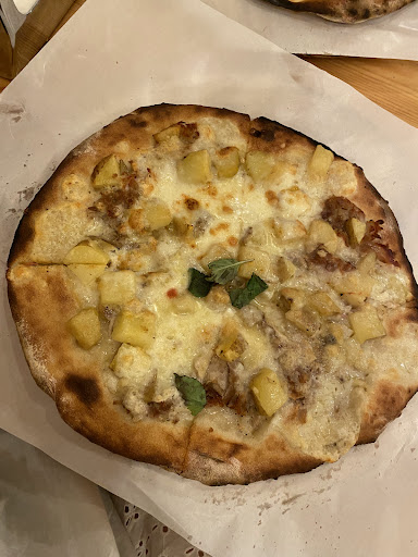Read moreFood: The pizza was delicious. The roast pig and potato one was great, as was a mortadella and pistachio one. Everything there was wonderful. The crust was crispy but not burnt, and tasted amazing. The toppings were delicious but not overpowering, a perfect balance. For dessert we tried their panna cotta as well as a caprese, since they were unfortunately out of tiramisu. The caprese was a dense yet light cake, tasting of chocolate a nutty taste, that was again not overpowering. The panna cotta had a good amount of fruit sauce and was really delicious. Drinks: They did not have anything special, I had a chinotto which washed my pizza down perfectly. They offer a basic selection of soft drinks, beers, water and others. Ambience: The space felt warm and homey, with wooden tables and benches and plenty of people filling the space. A nice place to have a pizza and catch up with some friends. Service: Despite there being a queue to get inside, we didn’t wait longer than a few, maximum 15, minutes to get inside. The service was quick and waiters were all very friendly. They were quite busy and forgot our drinks but this wasn’t even a problem, as another waiter got it for us a few minutes later. The staff were friendly and joking around with us too. Everything is served with disposable items, including plastic cutlery and greaseproof paper under pizzas. This was the only downside, as it was difficult to cut the pizza into additional slices with the plastic cutlery, though I understand that it is done for efficiency. The walls next to the tables also have plugs equipped with USB chargers, making it easy for even foreigners to charge devices. They also offered free wifi, but I didn’t manage to connect to it. Price: The place was very affordable, with pizzas being around €10 for something quite filling. The desserts were also fairly priced, and overall it was a filling and...