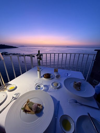 We stop by to eat with the beautiful sunset. We are in vacation and despite the service being very slow, we enjoyed the moment. After finishing our first bottle of wine, we decided to take another. Note: We are not drunk at all at this moment, no loud talking or anything that would imply that we are getting ahead of ourself. Just taking in the moment and the beautiful vacation. At one point I stand up and go to the bathroom, A gentleman behind me aboard me and tells me he's from the same country and we live very close (Canada, Montreal). He was overhearing our conversation and wouldn't want to interrupt. ( the table right beside us) As we finished our meal and our first bottle of wine. ( 45 minutes later still not having the 2nd bottle )I politely asked for 4 shots to enjoy with the gentleman we just met and his friend. Waiter nodded. As the night progress. Still no bottle... still no shots. A good 50 minutes has passed and I ask again. The waiter ( The Host, you could tell he was calling the shot "but not calling mine") responded very rudely that I was too drunk. Pardon me ?! We drank a bottle of wine 1h30 ago 😂. I asked if it was possible to get the shots to show a kind gesture to the other table. He might have thought it was all for us. But I made it clear that it was to share and why I was ordering. He wasn't having it. I have been very polite. We ordered food ( good. Michelin star worthy. Nope ) We had a good bill. Were being polite. I still don't get it. This was straight disrespectful in so many ways. He told me they didn't have the alcohol I aksed.. which i replied: you could have told me ?! Are we in a Michelin star restaurant ? He turn over and asked the other waiter if I was doing anything wrong as I was so confused about the situation. The host rushed to our table and made my friend paid in a rush before I finished talking with the other waiter that looked as confused as me. We did ended up with the shot. With the alcohol we ordered. Nice to lie... we shared the shot with the other table and then left. Very pretentious, lack of class. And not worthy of anything related to...