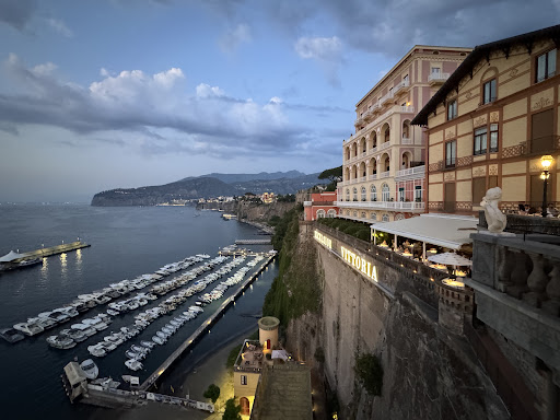 Possibly the most stunning location in Sorrento to enjoy drinks and the sunset. We discovered this place whilst looking for sunset drinks. You need to make a booking prior at the main entrance before walking down. It is also a minimum spend of 25 euros per person in your group, and the prices of drinks are on the very high side. However it is honestly worth it. You cannot beat the views of the coastline, Mount Vesuvius and the Mediterranean Sea. It is also an unbeatable locating for the sunset, with unspoilt, prime sunset viewing. The staff are all very accommodating and friendly, regardless of how much you are spending. We enjoyed the venue so much, we ended up spending several hours here. Overall an amazing visit and we highly recommend going to. We booked on the day and were seated immediately, so do not worry if you cannot book prior to the day of visiting. The staff all speak excellent English, so do not worry if you do not speak any Italian. The area also had a live singer, adding to the stunning ambience...