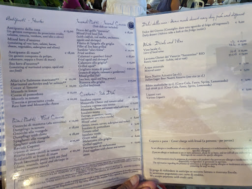 Really fresh seafood restaurant right on the waterfront with simple preparations. We walked up without a reservation and for a Monday it was packed and a line waiting for tables. But everyone seems to want to sit in the front row on the water and we were happy to be seated immediately under the awning. We ordered the caprese, the mussels in tomato sauce and the mixed seafood grill and a half liter of the house white wine. The mussels were definitely the highlight - plump juicy mussels swimming in a tomato based broth with tart cherry tomatoes mixed in. The spongy bread that is served at the table was perfect to stop up every last little drop. The fish on the seafood grill was also so fresh and delicate. It was some sort of herring I believe. The seafood grill also came with one prawn and two large pieces of cuttlefish. The cuttle fish flavor was good with that slightly charred taste that I love from the grill. But they were a little over cooked and would have been better pulled off the grill a little sooner. Or maybe pounded a little more. The one prawn was cooked perfectly. I would say I would have rather had more fish or more prawn than the cuttlefish/squid for 20 euros but it was all fresh at least. The caprese was okay. I would say the tomatoes were outstanding but the mozzarella was a little rubbery, not the kind I typically like with my caprese. This was more the kind I like on a pizza. The service - they sat us immediately as I mentioned. Silverware and serve ware came out. They took our drink order quickly, water and wine were served. and the food came out in the correct order very quickly, piping hot. They checked on us several times through our meal. I know these seem pretty basic but I have to say this is very rare for restaurants like this in Italy. It's more common in very high end places. They were friendly and efficient and the place was really well run. All in all a...