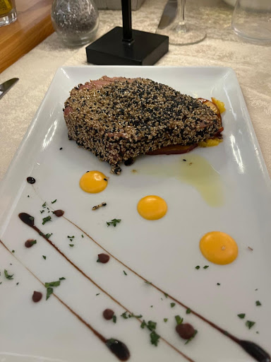It's a small restaurant (it's good to book the table) with a big collection of vines to choose from. As a first course I ordered paccheri with a fresh crab and it was delicious! As a main course a seebass with almonds - and it's really worth of trying. What's important you can pay your bill by a credit card. The stuff is very educated and kind. Toilets are very clean🖒. No problem with a car -we found a parking place in the street next to...