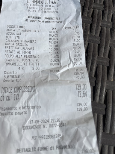 Read moreLido el Sombrero is a fantastic private beach in Soverato where you can rent sunbeds and enjoy a relaxing day by the sea. The location is beautiful, the beach is clean, and the water is crystal clear. The staff is friendly and attentive, making sure you have everything you need. They also take great care of cleanliness, both around the sunbeds and in the restrooms. The food at the restaurant is always fresh and delicious, and the coffee at the beach bar is high-quality and tastes great. I’ve been coming back here happily for several years, and it’s always a pleasure. Perfect place to unwind and soak up the sun, I always leave refreshed and happy. Highly...