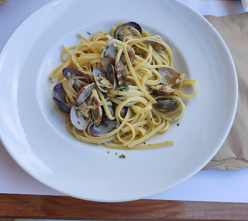 Read moreVERGOGNOSO. Non abbiamo chiesto nulla di particolare: una pasta al POMODORO per nostra figlia di 3 anni e uno spaghetto cozze e vongole . Pasta arrivata PRECOTTA , RISCALDATA in padella con PESTO DI basilico e salsa di pomodoro, inguardabile (come si può notare dalle foto in allegato) fatto presente a uno dei "responsabili " ritorna al nostro tavolo con un contenitore NERO con del pesto dicendo vede signora questo è semplicemente basilico frullato. Abbiamo chiesto nuovamente una pasta SEMPLICE al pomodoro , il risultato ? inguardabile e immangiabile come la precedente. La pasta con le vongole e cozze aveva quasi tutti i crostacei CHIUSI e la pasta come quella al pomodoro PRECOTTA E COMPATTA. Prezzo degli spaghetti in bianco? 15 € Proprietari MALEDUCATI , nel momento in cui siamo siamo andati a pagare ci hanno chiesto a gran voce di liberare il tavolo perché già occupato da nuovi...