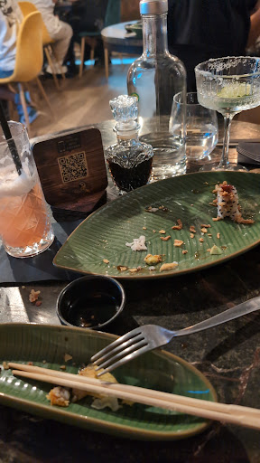 Negativo: Il riso cotto troppo, il sushi si sgretolava sotto le bacchette. Troppe salse, coprono completamente il sapore degli ingredienti sui quali vorrei dire di più ma non ho sentito niente se non il gambero cotto. Evitate qualsiasi cosa con la banana. Mi chiedo se i piatti siano stati assaggiati o se il mio palato non sia abbastanza fine, ma la frittura con la salsa di banana era ai limiti del sopportabile. La finiamo tuttavia per evitare eventuale penale (non abbiamo controllato essa fosse effettivamente presente).