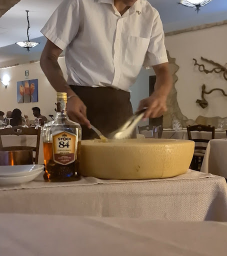 Il locale da un lato si vuole sicuramente dare un tono e lo dimostrano anche i prezzi sul menù al di sopra della media del territorio ma dall'altro lato non riesce a staccarsi dalla mentalità di sagra di paese con il cameriere che propone "allora facciamo un bel antipasto da mettere al centro" e in un attimo ti ritrovi nell'iconica scena del film miseria e nobiltà di Totò con tutti che azzuffano le mani nell'unico piatto posto nel centro.