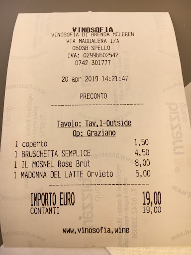 Read moreAs a food and wine lover, I found this place a rip-off. Is seems stylish and well thought, but the reality is that you pay a far too heavy price for all of it. We had an average Orvieto Classico and a good Franciacorta, both quite expensive to Italian norms, but it was the bruschetta that really was incredible - in the bad way. I can appreciate good olive oil and bread, but to charge 4,50 euros for two slices?! Plus coperto? That’s a shame - and I told the owner so (who firmly disagreed). Add to that an unprofessional service (labels of wine were not shown, no explanation whatsoever about the wine) and this seems to me a wine bar unworthy...