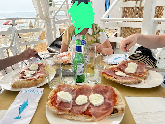 Supplì buoni. Veniamo alle pizze. Sono di tipo napoletano, leggermente altine e con il cornicione bello pronunciato. Il cornicione abbiamo notato essere bello pienotto e non tendenzialmente vuoto come dovrebbe, il che ha reso la pizza abbastanza pesante essendo lievitata così cosi. In quanto al gusto a me è comunque piaciuta. C’è stata solo una piccola incomprensione per una pizza che è stata rifatta, ma al momento del pagamento è stato risolto tutto. In conclusione se volete mangiare in una bella location sul mare, spendendo relativamente poco rispetto ad altre pizzerie della zona,...