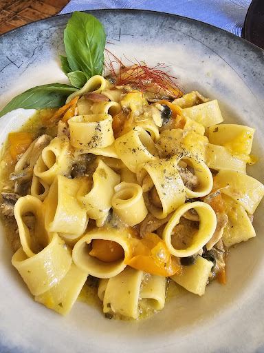 Read moreDopo aver passato la giornata al mare,in uno degli stabilimenti vicino il ristorante,la sera,prima di tornare a Roma ci fermiamo a mangiare,anche per festeggiare il come anno del figlio di un amico. Eravamo 8 adulti,e 7 bambini. Spaziamo con gli ordini dal carpaccio alla bruschetta del mare(vedere foto),alla pizza caprese(cotta a legna ma impasto più da pane-pizza che da pizza vera a propria. A me non ha creato nessun problema poiché le mie origini vertono sulla napoletana,piuttosto che sulla romana. Lo dico, perché,se ci si aspetta la classica romana,sbagliate a prendere la pizza). I primi variano dal classico spaghetto alle vongole agli gnocchetti al pesce spada ed olive di fondi,alla frittura di paranza,alla frittura di calamari e gamberi. Nulla da eccepire su nessun piatto. Gli spaghetti con le vongole non avevano un granello di sabbia e le vongole erano perfette. La frittura,sia essa di paranza o gamberi e calamari,per nulla unta. La bruschetta del mare,consta un un piatto con pesce,sughetto e due bruschettone(ottimo ma lo consiglio per 2). Gli gnocchi al pesce spada buoni, però l'oliva di fondi,essendo abbastanza acida ha coperto in parte il gusto dello spada. La pizza per me è stata ottima(ho fatto lassaggi del conicione). Pasta al sugo per alcuni bambini normale. Prese inoltre 4 cotolette impanate di pollo. La torta ordinata al ristorante è stata totalmente sbagliata,sia per consistenza(chantilly sbagliata,si sentiva troppo la panna) che la crema al cioccolato(idem,troppa panna) che la consistenza del pane di spagna. Poco arioso e di difficile masticazione. L'alveolatura era simile a quella del babbà,che di Pan di spagna ha ben poco. Cmq totale a coppia 115 euro(2 adulti e due bambini). Nel conto ci sono da considerare anche le bottiglie d'acqua,la coca cola e due bottiglie di pinot bianco da...