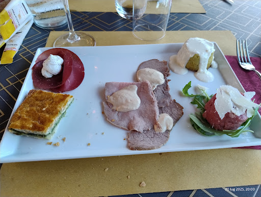 Il menù propone piatti della tradizione con interessanti rivisitazioni. L’antipasto misto è stato generoso e variegato, perfetto per iniziare: eccellente il flan e davvero ben eseguito il vitello tonnato, delicato e saporito. Tra i secondi, spicca l’anatra alla salsa martini: una proposta originale e ben bilanciata, dal gusto intrigante. Il tutto accompagnato da un buon vino rosso locale, perfetto per esaltare i sapori della cucina.