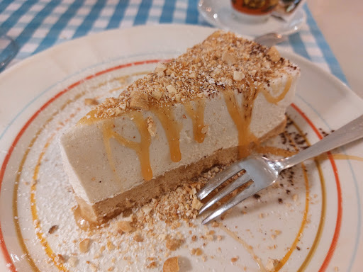 Il dolce? Una cheesecake fatta in casa dalla consistenza soffice e leggera, guarnita con caramello salato e granella di anacardi. Un finale dolce, ma non stucchevole, semplicemente perfetto.