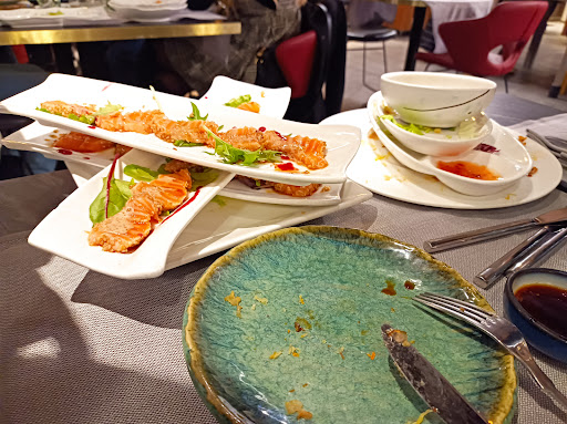 Read morePurtroppo devo dire esperienza davvero pessima, ma davvero tanto (posso affermare tranquillamente che sia il peggior ristorante di cucina asiatica “all you can eat” dove abbia mai mangiato). Il posto in sè è anche carino e ben addobbato per Natale, ma oltre ad un freddo pungente (siamo andati ieri a mezzogiorno, avrebbero dovuto accendere il riscaldamento la mattina) il bagno delle donne era una cosa disastrosa: i sanitari rotti, rovinati e pieni di calcare, il pavimento sporco ed i wc sporchissimi. Pieni di peli e non vado oltre (calcolando che apre alle 12 e io ci sono entrata a 12.15, non poteva che essere lo sporco almeno della sera precedente). Uno schifo! Nonostante questo, ordiniamo: menù abbastanza vario e buon prezzo, ma i piatti deludenti per non dire peggio! Gunkan, polpo e patate e altri 2 piatti sono arrivati freddo gelido da frigorifero (io capisco che si portino avanti con le preparazioni, ma tirateli fuori prima) immangiabili. Infatti lo abbiamo fatto presente alla cameriera. Gli involtini primavera (che li hanno un’altro nome) e le polpettine di polpo, unte bisunte trasudavano olio da ogni lato. I piatti di gamberi (agrodolce, piccante, gli spiedini) piuttosto gommosi e insapore. Come tutto del resto. Nulla era salato. Nemmeno la salsa di soia. Unico piatto buono mangiato: uromaki numero 74 (me lo ricordo perché appunto, essendo l’unica cosa buona che ci è arrivata, ed avendo avanzato quasi tutto, lo abbiamo ordinato 2 volte per riempirci). Ma davvero, l’unico piatto. Sinceramente ci sono rimasta malissimo. Non ci sono mai andata, ma più persone me ne avevano parlato bene, quindi essendo un’amante della cucina orientale ho voluto provare. Ma mai più! Non so se abbiano cambiato le materie prime o il cuoco, ma davvero, mai più. (Parlando poi con un paio di amici, mi hanno confermato che deve essere cambiato qualcosa perché i piatti e la qualità sono cambiati molto). Sconsigliato...