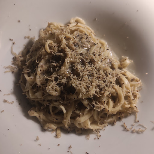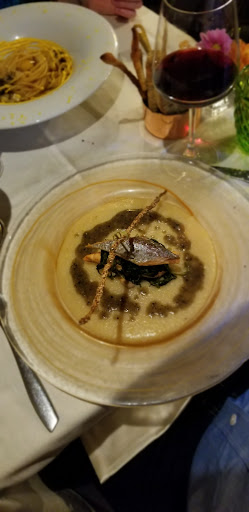 What an absolutely wonderful little restaurant. We opted for the outside tables on the small patio out back. Kind of wish we had selected inside instead since the small areas inside are so intimate and cool looking. Either way, it is the food we were here for and it did not disappoint in any way. I hate to admit, that since this was a long lunch to celebrate our friend’s anniversary, I forgot to take a photo of the menu and now can not find the receipt to know exactly what we had or what the photos are all of. The one pasta with the small egg yoke in the middle is a pasta carbonara, and it was amazing. As you stir the pasta the egg cooks, giving a unique freshness. Of course the red tomato pasta is a traditional pasta, but the flavor was outstanding. Appetizers were a savory cannoli that just burst with flavor. The most unique item was a cheese stuffed squash blossom. Everything that passed our lips was unique and bursting with flavors. Servings are not American huge, instead they are Italian tasteful. Plenty to eat and still feel good. The restaurant also has an excellent wine cellar with local selections. We had a bottle of local white that was perfect for the meal and not too expensive at all. This is a perfect special occasion restaurant and not to be missed when...
