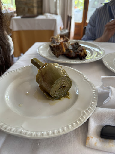 Read morelasciata Spoleto decidiamo di cercare un ristorante per la cena fuori dalla città per evitare le orde di turisti che la affollavano... tutti i ristoranti che ci indicava google non ci convincevano finche non vediamo questo: proviamo ci siamo detti! del resto era sulla nostra strada e poiche eravamo un po stanchi non avevamo voglia di fare troppe deviazioni. Così giungiamo qui e lo superiamo... perchè si trova dal lato opposto, venendo da Spoleto e col buio in prossimità della curva ho preferito evitare di fare inversione! cosi vado piu avanti finche sia possibile invertire la marcia in tutta sicurezza. Entrando ci sono due zone parcheggio sia a destra che a sinistra e sembra esserci un'area verde interessante...ma col buio non abbiamo visto bene. Entriamo e la signora ci accoglie con molto garbo e gentilezza! L'atmosfera è quella del locale familiare con arredo rustico e a volte devo dire un po' scoordinato... il che può far storcere il naso a qualche purista ma a noi questo piace perchè fa ancora piu "casa"! Sbircio in cucina e vedo un meraviglioso tavolone in legno con un fantastico ripiano in marmo ampio e alto... e penso che sarebbe fantastico mangiare lì! Ci sediamo e siamo serviti rapidamente...del resto non ci sono molti clienti. La cucina è ottima e la signora intrattiene i clienti con fare molto garbato e colloquiale: decisamente una atmosfera rilassante e piacevole in cui mangiare in tutto relax! Fuori dal circuito più frequentato, complice anche l'essere poco visibile finchè non ci passi proprio davanti, è sicuramente il posto ideale per stare in famiglia o anche per una comitiva per mangiare ottima cucina casareccia! Mi raccomando la crostata ottima con la marmellata fantastica fatta dalla signora! Non...