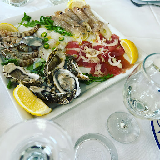 Read moreBene, bene, bene, tutti questi commenti positivi devono essere parenti molto stretti o amici, compari, padrini dei figli ecc. ecc. Partiamo dal presupposto che uno vada in un ristorante di pesce per mangiare PESCE non dico totalmente tutto fresco, ma almeno i crudi. Noi il gusto del pesce dal crudo fino al primo non lo abbiamo sentito in nessun piatto. Sotto consiglio delle bene addedtrate cameriere, abbiamo preso crudi, antipasti freddi e caldi. Tipologie di gusti zero! Roba riscaldata più volte perché le patate del polipo e patate erano secche, di giorni, i crudi erano vecchi. Il vino della casa da cirrosi epatica. E poi arriviamo alla chicca della cena, il primo, sempre sotto consiglio della ben addestrata cameriera, non solo scontrosa ma con tutti i problemi del mondo, e già quello mi ha irritato fortemente. Ho preso le mezze maniche con frutti di mare, e qui viene il bello. Mezze maniche totalmente crude, sugo preso dal barattolo e buttato nella pentola, pesce bollito e buttato a sua volta nella pentola, per un totale di schifo più assoluto. Infatti, tutto il pentolino scenografico, che hanno portato sul tavolo, è rimasto intoccato eccetto le 2 mezze maniche d'assaggio. Detto ciò, io non sono mai stato in carcere, ma penso che la mensa del carcere sia 4 stelle Michelin a confronto... punto finale, il conto che nessuno specifica o dettaglia: arrivando alla cassa abbiamo pagato 50 € per 4 piattini di antipasto vecchio e un primo inesistente dal valore totale di 10 euro a dire tanto, mi sembra una presa in giro bella e buona. Io non solo non lo consiglio ma faccio questa recensione proprio per far capire che è una TRUFFA a cielo aperto. Lo sconsiglierò a chiunque ne accenni...