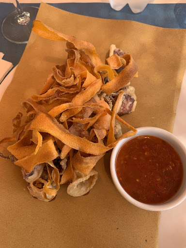 Read moreEsperienza traumatica. Abbiamo ordinato dal menu' del giorno, una pasta alla crudaiola burrata e tartare di gamberi, era una insalata di pasta fredda praticamente, anche scotta, gommosa, con pomodori, capperi, acciughe e un cucchiaino di tartare di gamberi e un cucchiaio di burrata, gli ingredienti sono anche buoni ma se mi facevo una schiscetta da casa era praticamente la stessa cosa, ho chiesto perché non fosse segnalato nel menù che ci fossero anche gli altri ingredienti, che coprono completamente il sapore dei gamberi, ma mi hanno risposto che la fanno così. Il mio compagno ha preso degli spaghetti alle arselle, ed oltre al poco sapore, abbiamo masticato gusci rotti che erano numerosi nel piatto, infine abbiamo preso una frittura di gamberi, calamari e verdure, vi erano 3 gamberi di numeor e i calamari erano una crosta rinsecchita di panatura, le verdure accettabili, ho parlato con lo chef spiegando gentilmente che mi sembrava assurdo venire da un altra città e spendere anche parecchio visto che vantano di essere sulla guida "gambero rosso" e avere un pranzo davvero al livello di qualcuno che sembra stia imparando a cucinare, lo chef, che è stato anche gentile, però ha voluto rifarmi i piatti di persona, a detta sua, nonostante avessimo avvisato che ormai non avevamo più fame e tanto sconforto, ebbene, abbiamo ritrovato le stesse problematiche anche nei piatti che ci ha gentilmente rifatto, abbiamo pagato 50€ non ci hanno fatto pagare solo uno dei primi. Davvero delusi per quanto abbiano provato a fare qualcosa ma...