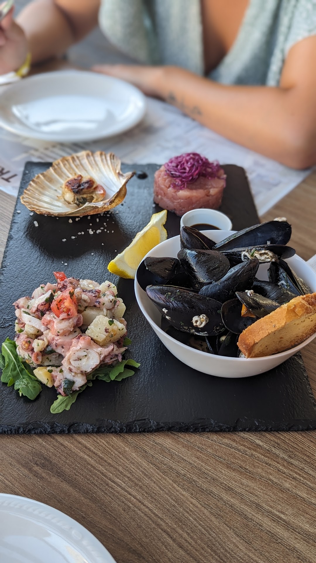 Read moreRistorantino sulla statale,evidenziato dal semaforo.Pesce e menù generico,senza infamia né lode.Sala confortevole, parcheggio piccolo. Frittura pesante,con eccesso di olio.Scampi (4)ben cucinati,ma senza alcun contorno, presentazione banale. Supplemento per coperto e servizio 2€ a persona,per tovaglioli di carta,4 pezzetti di pane e quattro bustine di grissini.Mancano le salviettine per la pulizia delle mani e salse varie. Nessun utensile disponibile per agevolare lo sgusciamento degli scampi.