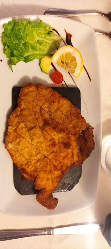 Wir waren zum Abendessen da, Hatten zwei Mal Wiener Schnitzel, einen Beilagen Salat und eine Portion Pommes. Obwohl nichts los war wurden wir in den Raum ohne Aussicht reserviert (ist okay, wir wurden bei Ankunft gefragt ob wir den Platz okay finden). Die Bedienung war freundlich und hat Englisch verstanden.
