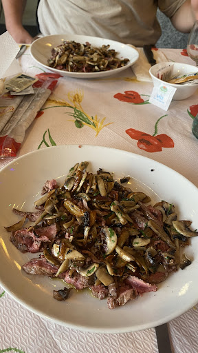 Sul cibo: piatti nel complesso buoni e con prezzi abbastanza contenuti. Ho molto apprezzato un ottimo primo ai funghi fuori menù (€14) e un discreto misto di carne alla brace (non tutti i pezzi erano cotti alla perfezione )(€18). Grande delusione il tiramisù (€5), non mi ha molto convinto il vino rosé alla caraffa leggermente frizzantino (€4). Ben gradito il limoncello finale, offerto gentilmente dalla casa.
