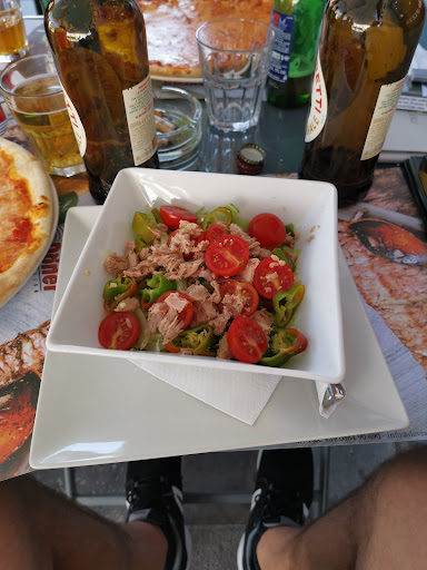 I got a pizza menu (one medium size Pizza, small size potato frize, a drink) for 7,50€ and the Pizza and Frize were really delicious. We ate outside because the restaurant didn't have air conditioning inside and it was very hot inside. However outside are not enough chairs and tables, so don't come for dinner because it's full. Outside is nice though, the streets are quite, you have a good view of the Villa and the...