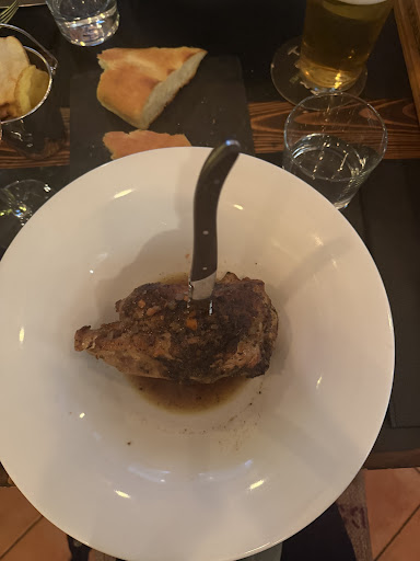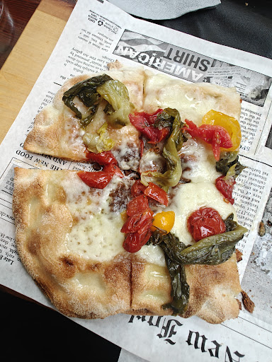 Next up, the pinsas. We sampled two varieties: the ham and the vegetarian. The ham pinsa was generously topped and somewhat satisfying. The vegetarian, however, was a minimalist's dream (or nightmare). About ten small tomatoes and a few artichokes seemed to have been dropped from a great height. Check the photo for evidence. The dough, on the other hand, was like a salty lick from the Dead Sea.