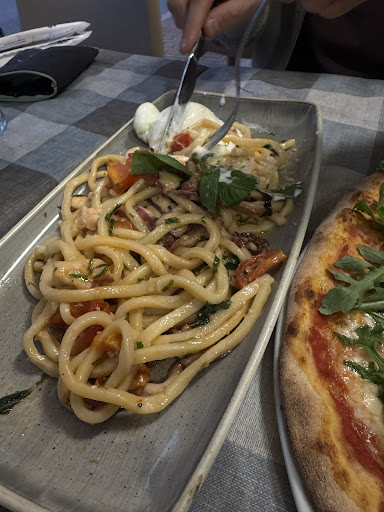 Read moreWe could have not find a better place for a homemade pizza! The place is situated near the main road, so is easy to find. They have a small terrace and cozy interior for a few people. Since we got there we felt like we already knew the whole staff - this is probably a common Italian approach but the waitress was extremely kind and obliging :) Lets get to the pizza! Fantastic! Sadly a I do not remember what were the names, but I had some vegetarian with cheese, aubergine, zucchini; the other one was with cherry tomatoes, mozzarella, proscciutto; the third one was some Italian sausage with spinach - but I bet all of the pizzas would be great! The real charm is the dough - some kind of wholegrain flour, crunchy, well seasoned. And even when we were leaving we got a little gift for our little cousin. Would give six stars but...