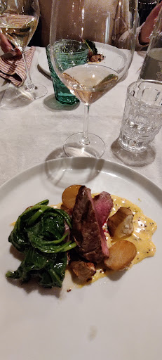 Following all the nice recommendations we booked a table, which payed off because all other seats where taken when we got there. The location is nice and well designed. Service seemed stressed, not very friendly at all. We got bread, no oil or salt, no butter or anything else. The main course, Beef Sirloin, arrived at the table quite raw in the center even tho we ordered medium. Also it was nearly cold when we got it, just like the plates it was served on. Temperature aside the taste of the main course was good. The first deserts that arrived at our table were wrong, seems like service mixed up some orders, the right ones were served a few minutes later. Plates were warm this time (!?), we ordered pistacchio ice cream. Taste was ok. Without asking for it we where then told where to pay quite shortly after. We payed our 80⏠bill...