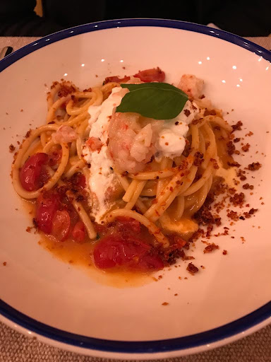 Read moreHighly overrated. Wine by glass was served to a different volume, our order was first brought to the wrong table, pasta was served cold, bread on the table was old, waitress was not happy of her job. Couple on the next table was served cold food, too. They complained and got the same dishes back in 30 seconds. Obviously, it was microwaved. Kitchen was disappointing, too - pasta with shrimps (on the picture) tasted of butter, not of shrimps and was full of sour creme; poached egg with zucchini is a joke. Second meal was good, although the overall mood has been already ruined. Being in the restaurant feels extremely loud with echos. Personnel is stressed and doesn't care since the turnover is high. Will...