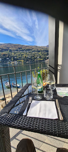 The restaurant is situated on the marvellous Isola dei Pescatori(Fishermen's Island). We were sitting on the terrace with a wonderful view to the lake, the opposite coast and the Isola Bella, the neighbour island. The rooms of the restaurant are designed in a very elegant style. The staff is very friendly and polite and obviously tries do everything for the personal well being of the guest. We ate for example as antipasto a cream of pikeperch with caramelized onions and fish eggs. So delicious! The salmon fillet was so tender, the caramelized red onions in harmony with the (also red) radicchio was a dream. The risotto with pieces of marinated perch consisted of best Carnaroli rice which was really "al dente". And we had a glass of white wine each, one from Friuli, dry and wonderful fruity, and one Arnaïs from Piemonte, dry and fresh with slight sourly notes and traces of the minerals of the ground where the grapes have grown. The dessert, a wonderful tasting fruit sorbet rounded up this wonderful meal, savoured in the mild November sun. The padrone brought us by himself a second spoon understanding that we'd like to enjoy "uno/una"( one for two). This is only an example for his kindness. We were there two time while our stay at Stresa and we certainly will...