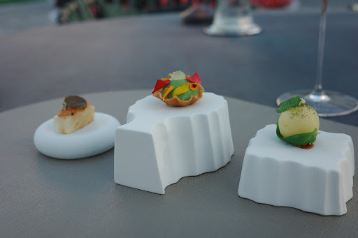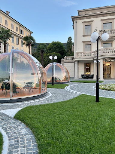 Locale molto bello con un lusso elegante e discreto. Tutto molto moderno, con un respiro internazionale. Pulizia top. Il personale di reception e di sala é gentilissimo, molto professionale e attento alle esigenze del cliente. Ho chiesto di parcheggiare l’auto e, nonostante l’hotel fosse abbastanza full, la persona alla reception si è prodigata per accontentarmi. Accoglienza dei camerieri al top, un plauso particolare a chi ci ha seguiti (Luigi), persona di grande esperienza, competenza ed empatia la cui presenza ha dato un plus alla nostra permanenza. Maitre un po’ assente e dai modi leggermente affettati. Abbiamo cenato nelle bolle, molto belle e scenografiche (anche se le piante di plastica appese sono terribili, sarebbero da eliminare!). La cena: ottimi gli amuse bouche, ottimo l’antipasto (ricciola in ceviche), anche presentato molto bene. Il secondo (branzino) era ottimo come materia prima e cottura; ho trovato un po’ insapore e decisamente troppo abbondante rispetto al piatto la crema, tanto da sovrastare e rendere il piatto lievemente insignificante. Dolci buoni, con una particolare attenzione alla presentazione che risultava molto belle e moderna (cheese cake eccellente e rivisitata con ingredienti interessanti con un risultato ottimale; choux choux da migliorare la consistenza al palato della pasta, per il resto piatto ottimo e bellissimo). Nel complesso esperienza molto piacevole e sicuramente da ripetere. Unica nota negativa: siamo stati invitati più volte a fine cena dal personale di sala a visitare il rooftop (dove peraltro sono già stato diverse volte e con ottima opinione) per un drink. Nonostante l’ora tarda, abbiamo accettato e siamo stati accompagnati da Luigi, il quale ha gentilmente avvisato il responsabile del rooftop (mi pare si chiamasse Gianluca) che eravamo clienti del ristorante e avremmo avuto piacere di fermarci a bere un drink, raccomandando un buon trattamento. Abbiamo ordinato due calici di champagne e immediatamente il personale si è messo a sbaraccare tavoli, chiudere vetrate ecc ecc, segno evidente che avevano fretta di chiudere. Il responsabile é stato particolarmente sbrigativo e frettoloso senza la minima gentilezza. Se il locale é aperto e i clienti vengono fatti accomodare, soprattutto in una struttura di simile livello, si ha diritto a stare tranquilli, ad essere serviti con garbo e non essere in mezzo a rumorosi riti...