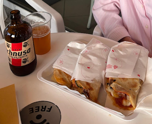 I am originally from Elmas but I live abroad, I came to visit my mum and fancied pizza. I went to eat at Gusto Tondo with my fiancé and I must say the folded pizza there was lovely, different from what we usually eat around here which is a square pizza slice called "pizzetta" . The dough was not thin nor thick and very tasty, the pizzas loaded with cheese and top quality ingredients. They also served a unique type of pizza pie made with chickpea flour and that was also lovely. Despite the richness of the meal, we digested really well, and the owner did tell me the dough of the pizza is left to rise 48 h. In Gusto Tondo they also sell traditional Sardinian pies called panadas which are amazing and I encourage everyone to try them. Overall we had a great experience and I would say to visitors coming by in Elmas to pop in Gusto Tondo for a taste...