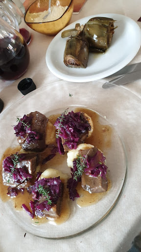 Read moreComincerò dicendo che la sola genuinità, disponibilità e simpatia della titolare spingono a tornarci. Passava per i tavoli come un infermiera a chiedere se tutti stessero bene e caso contrario come fare per star meglio: mai visto tale atteggiamento verace spontaneo e sincero! Il posto è semplicissimo, forse tra i più semplici mai visti e questo è un bene perché ti fa concentrare sul cibo e sul prezzo. Cibo: qualità degli ingredienti strepitosa, come a km 0, sottolii eccezionali con salumi e formaggi squisiti, pane caldo a completare antipasto tipico in quantità. Ecco la quantità: porzioni quasi esagerate per sfamare chi si presenta con una fame atavica. Prezzo veramente onesto perché la qualità può essere servita anche col valore aggiunto del vedere chi la sà apprezzare. Manca però - secondo il mio parere- qualcosa che è fondamentale e le 4 stelle sono per incoraggiare: ai fornelli occorre evitare alcuni banali errori che possono compromettere quanto di buono tutto il resto garantisce, troppo sale nel tagliolino a porcini e tartufo ed esageratamente spessa la tagliatella fatta in casa al sugo di carne, la cheesecake deve essere fresca con la parte morbida quasi spumosa e non fredda quasi in stile semifreddo. Sono piccoli aspetti per migliorare quanto già di buono viene fatto; lo consiglio a tutti, andateci e assaporate...
