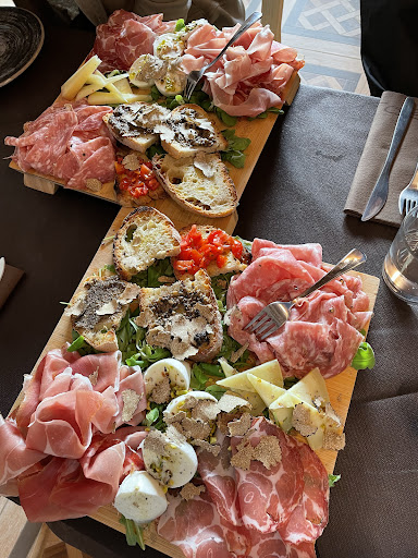 Da dove cominciare? Potrei scrivere che le rappresentazioni proto tassidermiche all'interno del locale, più che ornamenti, sono presagi dei piatti che si consumeranno durante il pranzo. Passando oltre la perdita accidentale della prenotazione effettuata tre giorni prima (fortuna ha voluto che di martedì comunque abbiamo trovato posto), passando oltre l'accoglienza distratta di un cameriere attento alla fuoriuscita del calore più che all'ingresso dei clienti, passando oltre tutto questo, rimangono i piatti. Tagliere special consigliato per due. Ne prendiamo due. Ci propongono di unirlo così da avere più spazio sul tavolo. Ci portano un tagliere per due con quattro bruschette anziché due. Cosa che abbiamo potuto verificare guardando un altro giorno tagliere per due a due clienti di un'altra tavolo. 15 euro per una bruschetta con pomodoro ed una con salsa di tartufi è decisamente troppo. E qui veniamo al dunque. Per un posto che vanta nel suo nome il tartufo, avere creme di tartufo e tartufi senza alcun sapore è il colmo. E trovo che sia inutile che ci venga chiesto continuamente se tutto andasse bene. Pura, inutile formalità priva di ogni reale interesse. Lo sconforto ha preso il sopravvento aprendomi gli occhi sull' inutile polemica che ne sarebbe scaturita muovendo il mio dissenso. A conto pagato, il divertente saluto: "arrivederci". Non...