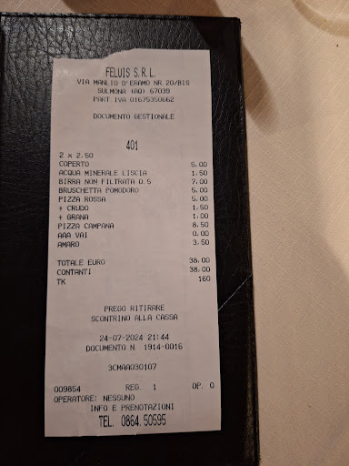 Read moreTITOLO: Intolleranza al lattosio? No party! Non mi piace postare recensioni negative ma...non posso far altro. Allora comincio scrivendo che vado a mangiar fuori spesso e mai in città, paesi, frazioni, borghi....ho avuto problemi per mangiare a causa dell'intolleranza al lattosio. Nel 2024 non è possibile ordinare una pizza con mozzarella senza lattosio e sentirsi rispondere " non è possibile perché la mozzarella senza lattosio va ordinata in anticipo, abbiamo bisogno di almeno un giorno per ordinarla, non siete in tanti con questa necessità per cui non possiamo acquistarle con il rischio di buttarle!!!" Bho vabbè... peraltro in zona turistica!!! Cerco una alternativa con il cameriere e ordino una pizza rossa con prosciutto crudo e scaglie di parmigiano rigorosamente messi a cottura terminata. Le scaglie di parmigiano erano 5 e inminiatura...non erano scaglie...il prosciutto era secco (ma questo è gusto soggettivo), il pomodoro sulla pizza era crudo. Risultato...ho mangiato solo un piccolo trancio di pizza, il resto è rimasto nel piatto. Il cameriere è venuto a ritirare i piatti, ha guardato ma non ha chiesto "tutto bene" come si fa di consueto...probabilmente perché già immaginava la risposta. Come antipasto avevamo ordinato delle bruschette non terminate all'arrivo della pizza, il cameriere ha portato via l'antipasto restante in modo arbitrario. Il conto...una caricatura...hanno segnato pizza rossa con aggiunte a pagamento di prosciutto crudo e parmigiano...ma esattamente quale parmigiano ho pagato ?!?!?!?!?! Ovviamente al momento del pagamento non ho detto nulla...fare polemica con chi??? Cmq POSTO ASSOLUTAMENTE NON CONSIGLIATO. A Sulmona ci sono tanti localini eccezionali dove poter andare e dove...