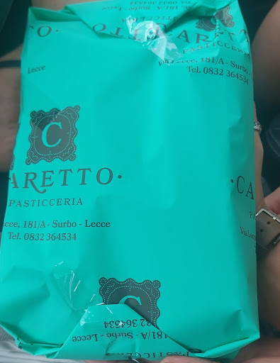 Read moreLa pasticceria è situata all'angolo di una intersezione della via Lecce di Surbo. Belle sia l'insegna che la vetrina colma dei prodotti artigianali. All'interno l'ambiente è ordinato e i dolci sono ben esposti, si può anche scorgere una parte del retrobottega dove si trova il laboratorio. I pasticciotti sono serviti tiepidi, la frolla è ottima: non troppo dolce, ma ben cotta e della giusta consistenza. La crema non è preponderante, non sa tanto di limone, né di vaniglia, ma è liscia e molto delicata. Il fruttone ha un ottimo cioccolato e si sente molto bene la pasta di mandorle. Prezzo onesto. Raccomando una colazione a tappe nelle prime ore del mattino: pasticciotto da Caretto e caffè in piazza a Lecce (circa 8 minuti...
