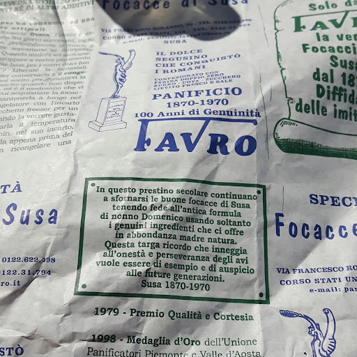 Read moreSemplicemente un negozio unico, stupendo! Mi ricorda il profumo di quando ero bambino: la Focaccia di Susa è semplicemente unica ed imbattibile! E poi che dire di tutti i prodotti da loro sfornati freschi ogni giorno? Dal pane classico a quello di segale, dai formidabili grissini al pane dei toast, dalle paste di meliga ai torcetti: credetemi, è un incanto per il palato! Rispetto alla sede originale degli anni ’80, in Piazza San Giusto, oggi trovate al suo interno anche un Punto Crai. Non ultimo, un plauso per aver saputo resistere all’avvento dei supermercati e per essere l’unico produttore della tipica Focaccia di Susa, quella vera ed originale, dal lontano 1870: siete ad un passo dai 150...