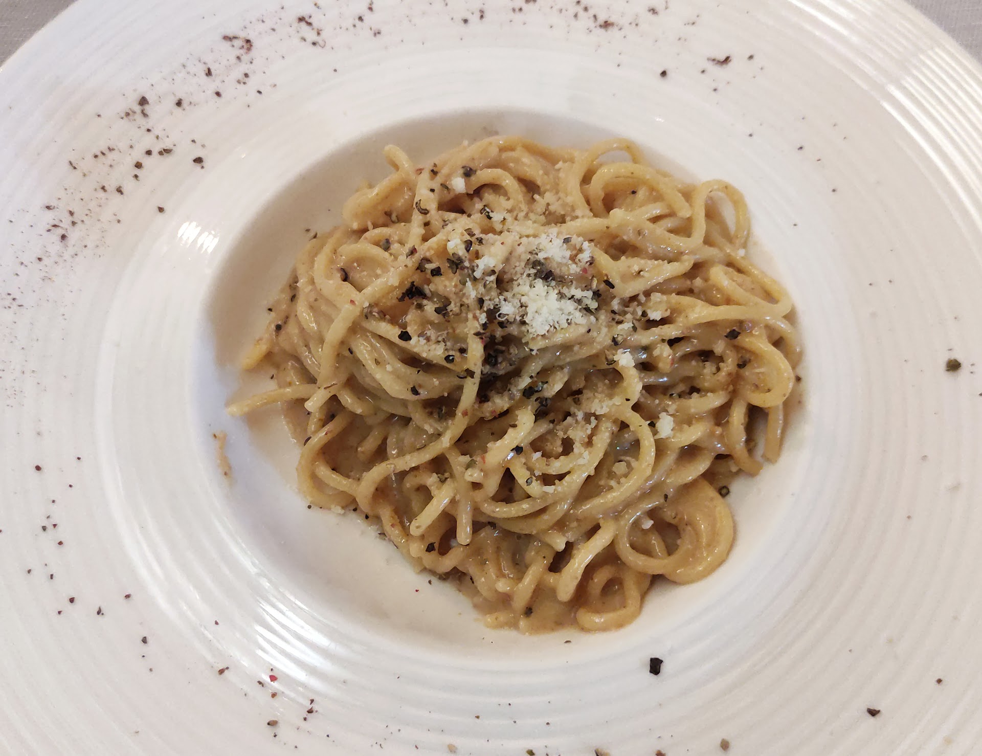 Il cibo infine, la cosa più importante: SPAZIALE. Parte del coperto è il pane che davvero è buonissimo, fresco e ti fa venire voglia di mangiarne ancora. Primi: veramente speciali, dalla qualità della pasta fatta in casa ai sughi ricercati con prodotti di qualità (basti pensare al cacio scelto o alla qualità del tartufo) Secondi: noi abbiamo provato solo la fiorentina di Nostrana ed un contorno di patate arrosto (interessanti, spezie molto originali), e siamo rimasti contentissimi specialmente da una carne mai mangiata di così buona qualità Dolci: ben fatti e molto gustosi, consiglio in particolare il sorbetto perché fatto in casa ed estremamente dissetante a fine serata