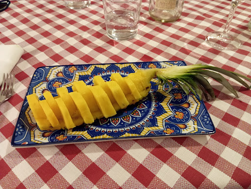 Read moreIn settimana ero di passaggio, visto con la cosa dell'occhio all'ultimo secondo. È la classica trattoria in cui ci si aspetta di vedere i nonni giocare a briscola. Locale stretto e lungo un pò in penombra però carino e dal sapore familiare. Due piatti di pasta, un'amatriciana e una al ragù entrambe ottime. Pollo alla piastra con patate e lonza di maiale con finocchi gratinati, ottimi anche questi. Porzioni giuste, non da appensantire ma nemmeno da rimanere con fame. Un ottimo pinot come vino della casa. In due abbiamo speso 38€, una miseria. Due camerieri (o titolari?) molto solerti e la cucina con tempi brevissimi. Unica pecca, ma io sono super calorosa, faceva troppo...